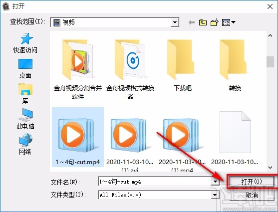 2.接着在文件添加页面中,我们将需要转为DPG格式的MP4视频选中,再点击页面右下角的“打开”按钮即可。