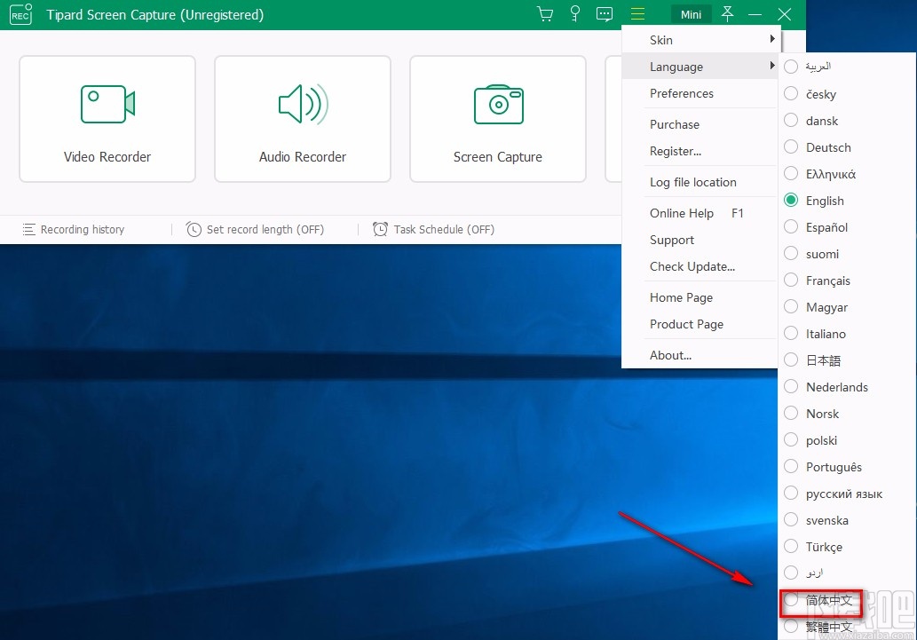 Tipard Screen Capture是一款功能十分强大的电脑屏幕录制软件,该软件可以帮助用户录制电脑屏幕,同时也支持对电脑屏幕进行截屏操作。此外,这款软件还支持多种语言,所以我们将这款软件下载到电脑上的时候,常常会发现用户界面语言是英文,这会给我们使用这款软件造成一定的困难,因此我们很有必要掌握设置中文的方法。鉴于很多小伙伴不知道怎么对其设置,那么接下来小编就给大家详细介绍一下Tipard Screen Capture设置中文的具体操作方法,有需要的朋友可以看一看并收藏起来。