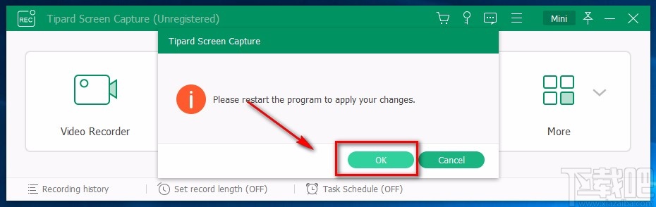 5.接下来界面上就会出现一个窗口,窗口提示我们需要重启软件才能使刚刚的语言设置生效,我们直接点击窗口底部的“OK”按钮就可以了。