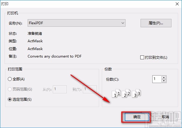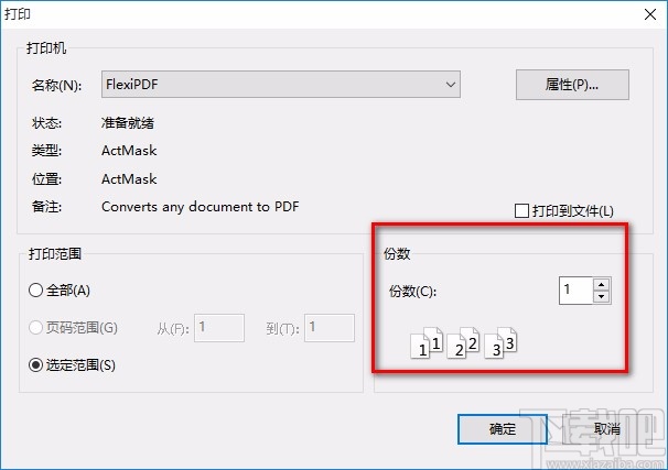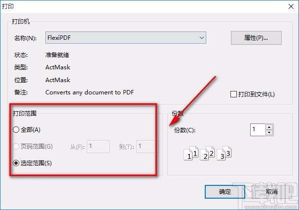5.接下来在窗口右侧找到“份数”选项,我们根据自己的需要,在该选项后面的文本框中输入需要打印的页数范围。