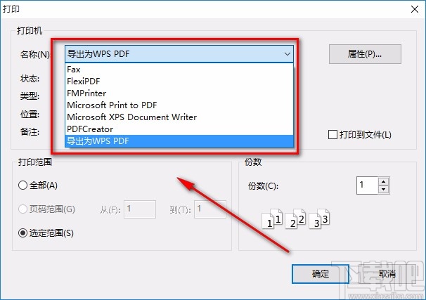 4.随后在窗口左下方找到“打印范围”选项,我们根据自己的需要在该选项下方设置打印范围;如果选择“页码范围”,则还需要在其后面的文本框中输入需要打印的页码范围。