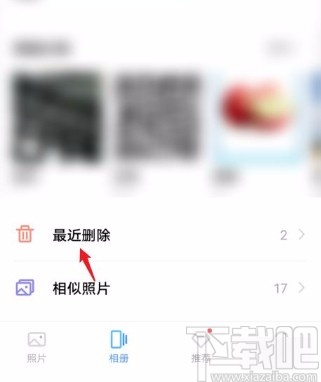 2.进入到相册主界面后,我们在界面上找到“最近删除”选项,点击它即可切换到最近删除页面。