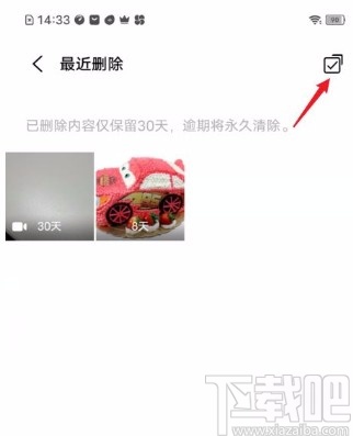 3.接着在最近删除页面中,我们在页面右上角找到下图所示的按钮,点击该按钮再进行下一步操作。