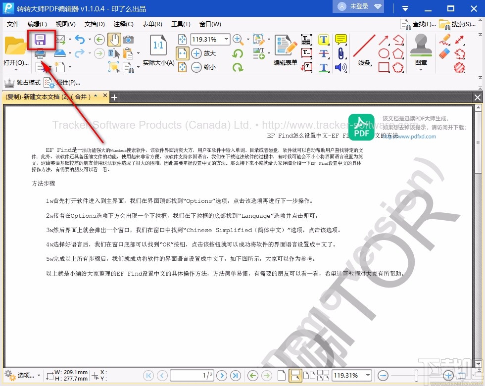 10.完成以上所有步骤后,我们在界面左上角找到保存按钮,点击该按钮就可以将裁剪页面后的PDF文件保存起来。