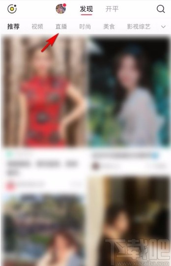 1.首先打开软件进入到主界面,我们在界面上方找到“直播”选项,点击该选项就可以进入到直播页面。