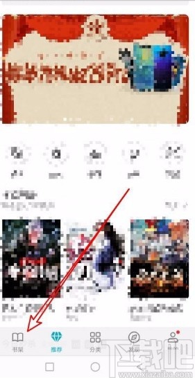 2.进入到软件主界面后,我们在界面左下角找到“书架”选项,点击该选项就能进入到书架页面选择需要阅读的书目。