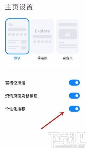 5.最后就会进入到主页设置页面,我们在页面上找到“个性化推荐”选项,点击该选项后面的开关按钮将其关闭,这样就成功关闭个性化推荐了。