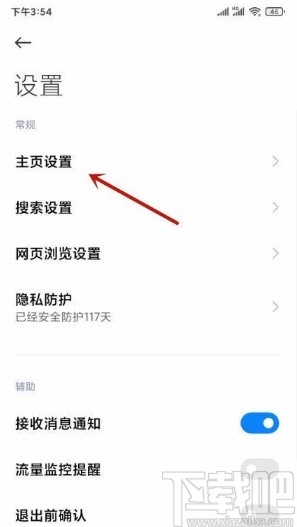 4.接下来在设置页面中,我们在页面上找到“主页设置”选项,点击它即可进行下一步操作,如下图所示。