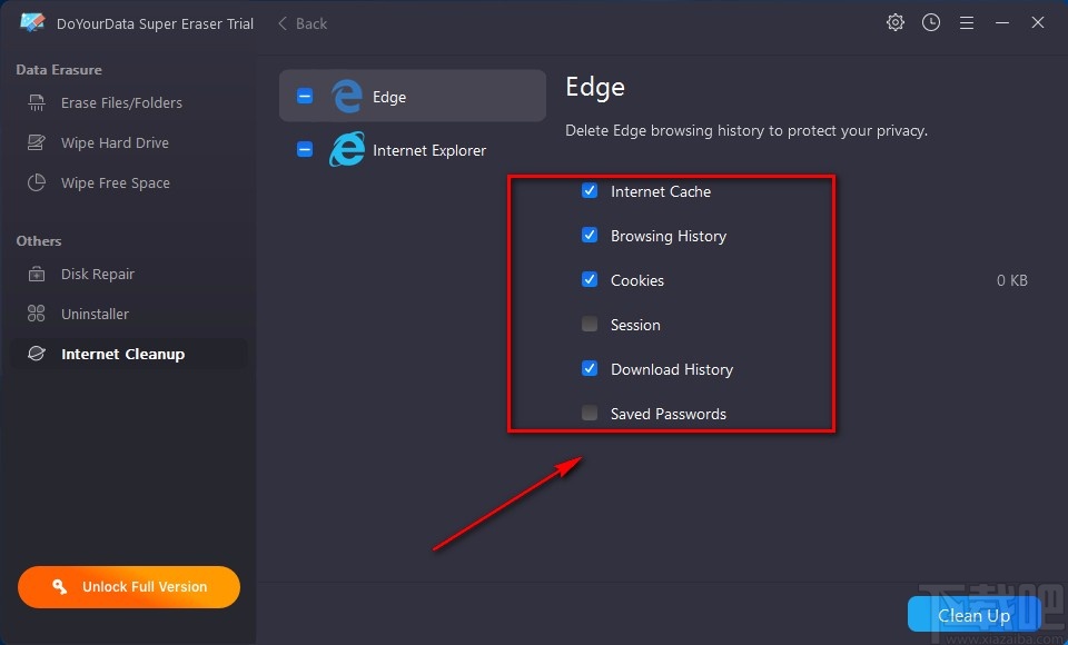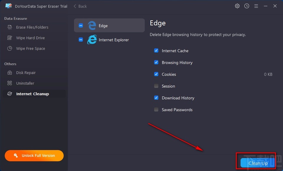 DoYourData Super Eraser是一款简单而又实用的文件删除软件,它可以帮助我们彻底删除电脑中的文件以及硬盘驱动器分区中的可用空间。我们在使用电脑的过程中,常常会使用浏览器上网,在这个过程中就会产生一些上网痕迹,这些痕迹在一定程度上暴露了我们的隐私信息,因此我们需要将它们加以清理。但是这款软件的界面语言是英文,所以有很多小伙伴都不知道怎么操作。那么接下来小编就给大家详细介绍一下DoYourData Super Eraser清理上网痕迹的具体操作方法,有需要的朋友可以看一看。