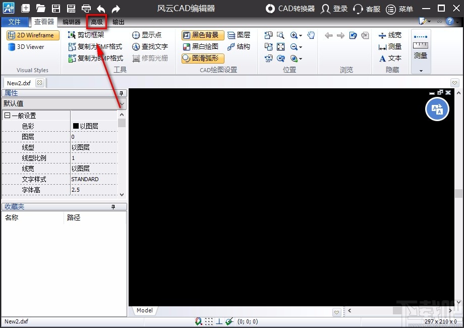 2.接着在界面顶部找到“高级”选项卡,我们点击该选项卡,其下方就会出现很多相关的操作选项。