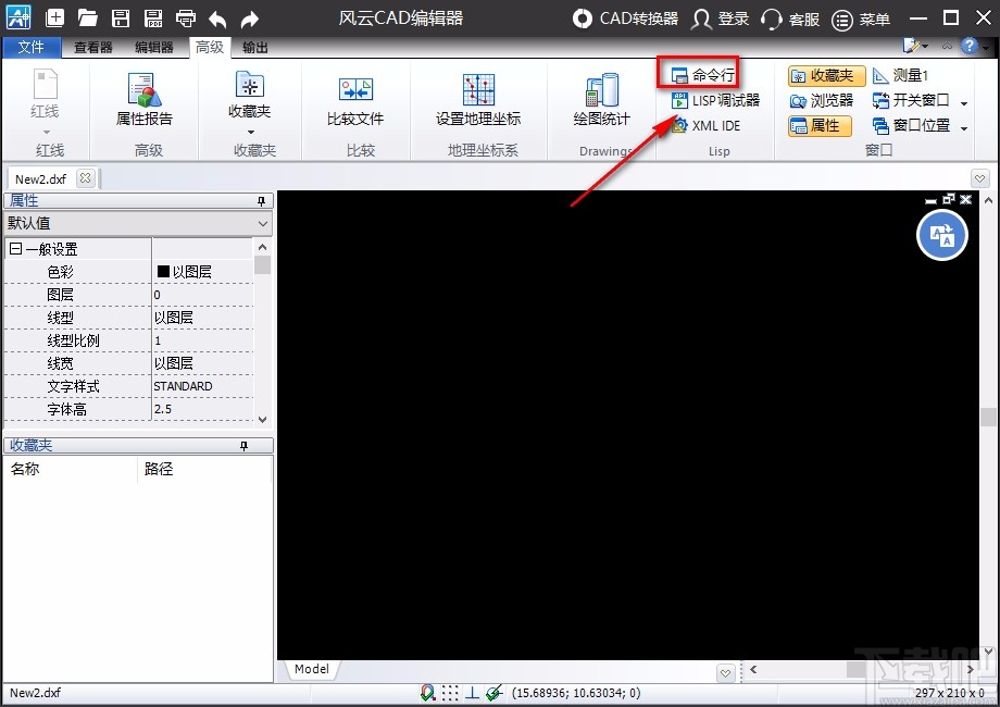 3.接下来在界面上方的工具栏中就可以找到“命令行”按钮,我们点击该按钮就可以进行下一步操作。