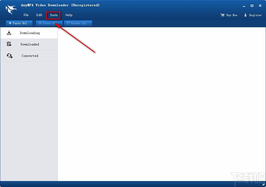 1.首先打开软件,我们在界面左上方找到“Tools”选项并点击,其下方就会出现一个下拉框。