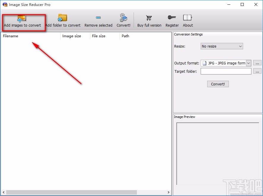 1.首先打开软件,我们在界面左上角找到“Add images to convert”按钮,点击该按钮进入到文件添加页面。