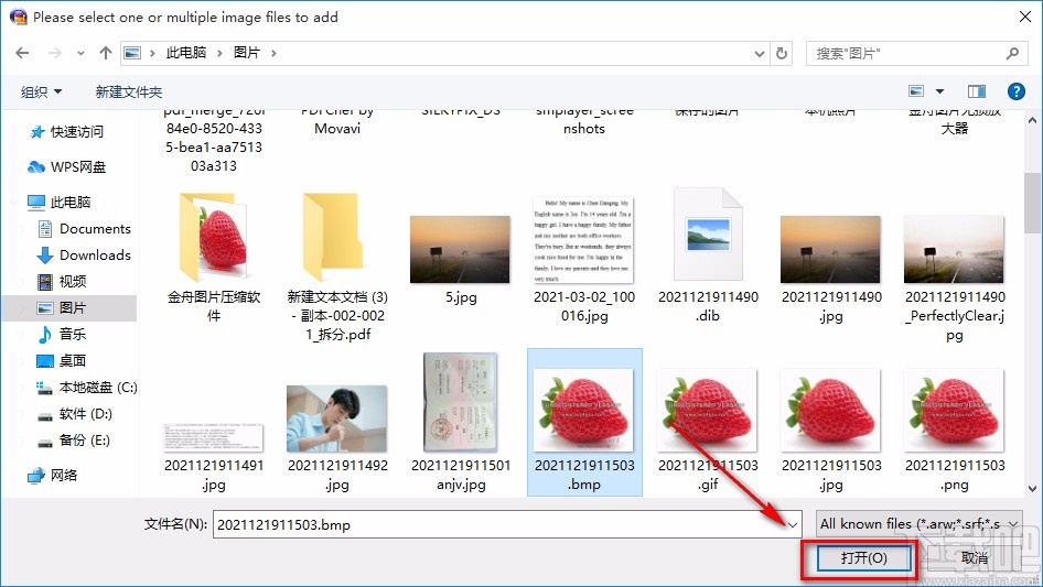 2.接着在文件添加页面中,我们将需要转换格式的图片选中,再点击页面右下角的“打开”按钮就可以了。