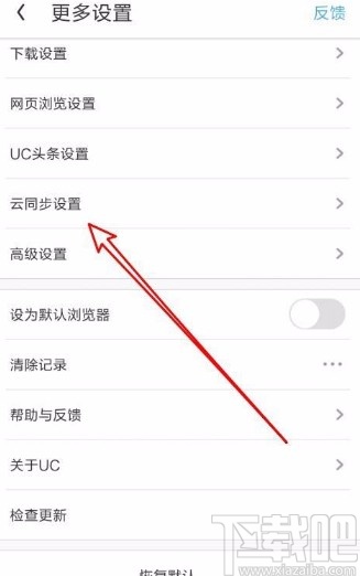 4.接下来在更多设置页面中,我们在页面上找到“云同步设置”选项,点击它即可切换到云同步页面。