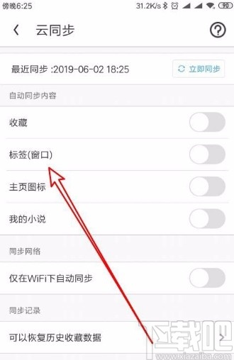 5.最后在云同步页面中,我们在页面上找到“标签”选项,点击该选项后面的开关按钮将其打开,即可成功完成全部的操作步骤。