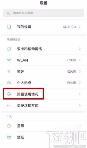 2.接着在设置页面中,我们在页面上找到“流量使用情况”选项,点击它即可进行下一步操作。