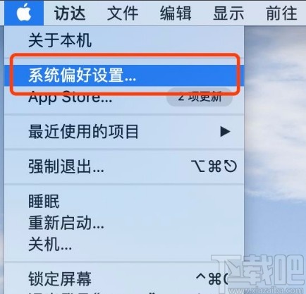 2.接着在苹果图标按钮下方就会出现一个下拉框,我们在下拉框中找到“系统偏好设置”选项,点击它就可以了。