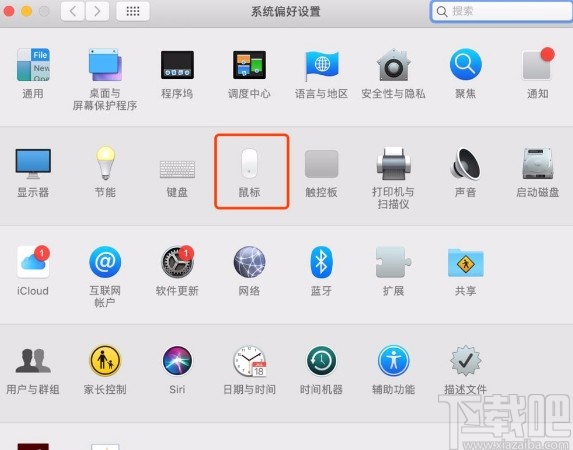 3.然后界面上就会出现一个系统偏好设置页面,我们在页面上找到“鼠标”选项,点击它就可以了。