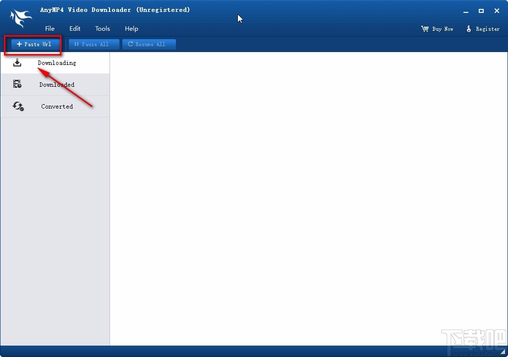 1.首先复制视频下载链接并打开软件,我们在界面左上角找到“Paste Url”按钮,点击该按钮就可以打开视频下载窗口。