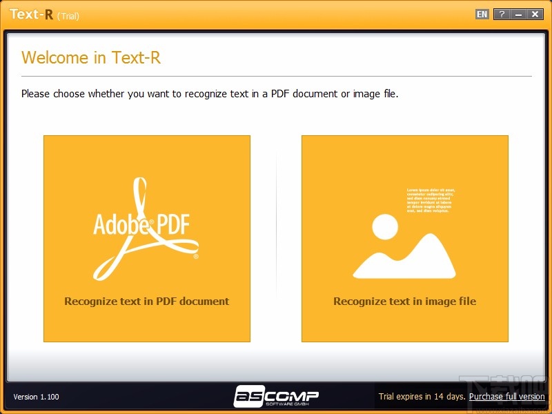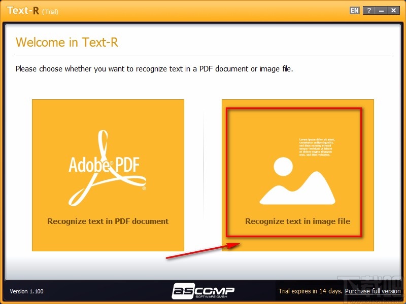 1.首先打开软件,我们在界面右侧找到“Recognize text in image file”选项,该选项表示识别图片文字的意思,点击它即可。
