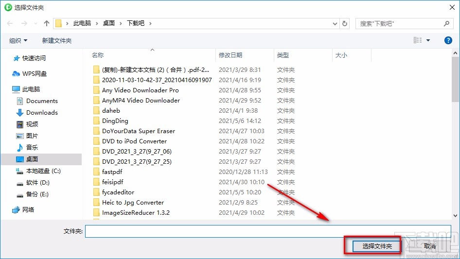 6.最后在文件保存路径选择页面中,我们将文件的保存位置选中,再点击页面右下角的“选择文件夹”按钮就可以了。