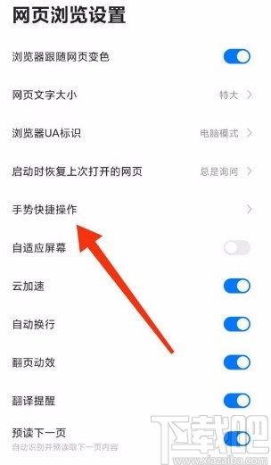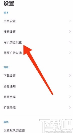 3.然后在设置页面中,我们在页面上找到“网页浏览设置”选项,点击它就可以切换到网页浏览设置页面。