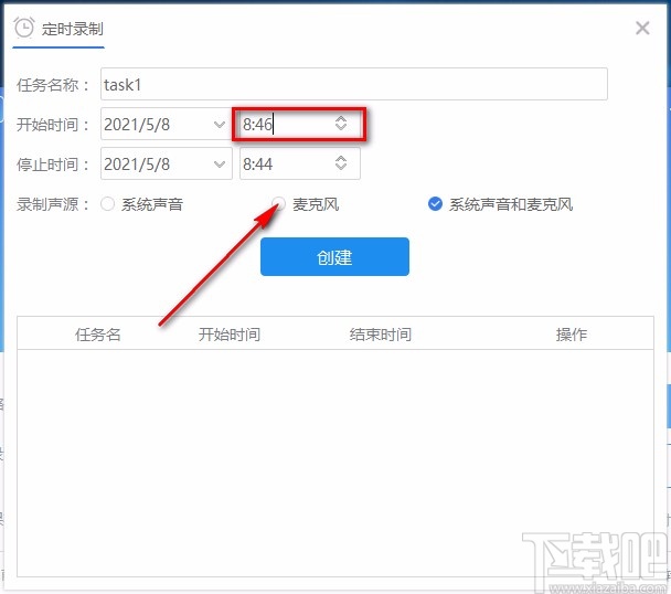 7.完成以上所有步骤后,我们在窗口中找到“创建”选项,点击这个选项就可以创建录音任务了。