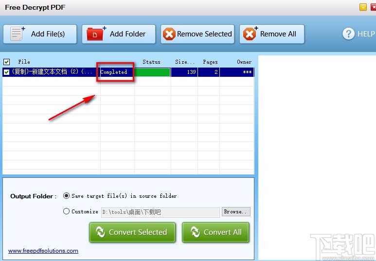 7.PDF解密成功后,我们在界面上找到文件名,在文件名后面可以看到“Completed”的提示字样,如下图所示,大家可以作为参考。