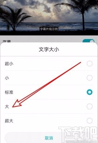 6.完成以上步骤后,界面上会出现一个文字大小窗口,我们根据自己的需要在窗口中设置字幕的字体大小即可。