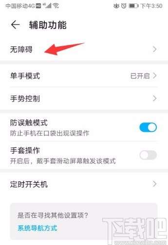 3.然后在辅助功能页面中,我们在页面上方找到“无障碍”选项并点击,就可以进行下一步操作。