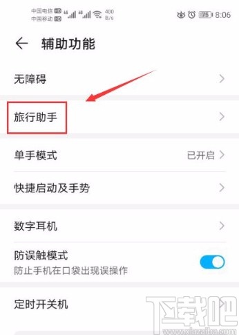 2.接着就会进入到辅助功能页面,我们在页面上找到“旅行助手”选项,点击它就可以进行下一步操作。