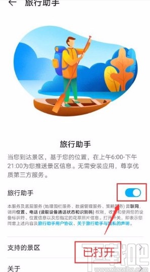 华为手机是一款相当优秀的智能手机,这款手机作为一款国产手机,不仅拥有出色的功能,而且使用起来也很稳定,所以受到广大用户的好评。随着生活水平的提高,越来越多的朋友会在节假日出行旅游,这时候我们就可以开启旅行助手功能,这样当我们到达景区后,手机就会给我们发送景区推送消息,让我们对当地的旅游景点有所了解。鉴于有的朋友不会打开这个功能,那么接下来小编就给大家详细介绍一下华为手机打开旅行助手功能的具体操作方法,有需要的朋友可以看一看。