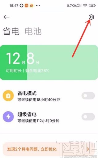 3.然后在电池与性能中,我们在页面右上角找到齿轮状的设置按钮,点击这个按钮就可以进行下一步操作。