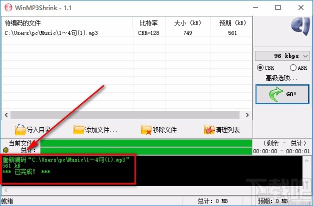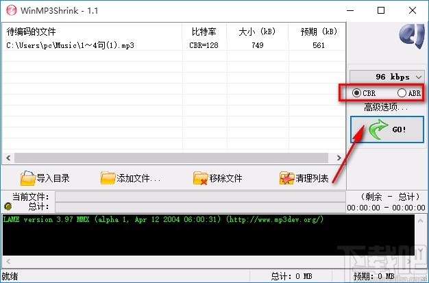 5.完成以上步骤后,我们在界面右侧找到“GO”按钮,点击这个按钮就可以开始压缩音频文件了。