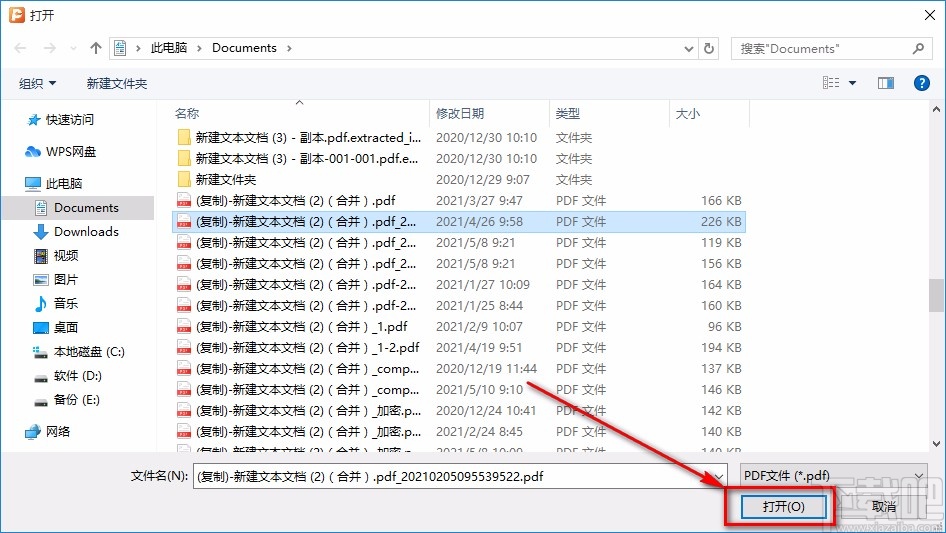 3.在文件添加页面中,我们将需要进行压缩操作的PDF文件选中,再点击页面右下角的“打开”按钮就可以了。