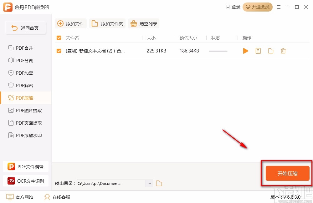 6.完成以上所有步骤后,我们在界面右下角找到黄色的“开始压缩”按钮,点击这个按钮就可以开始压缩PDF文件。