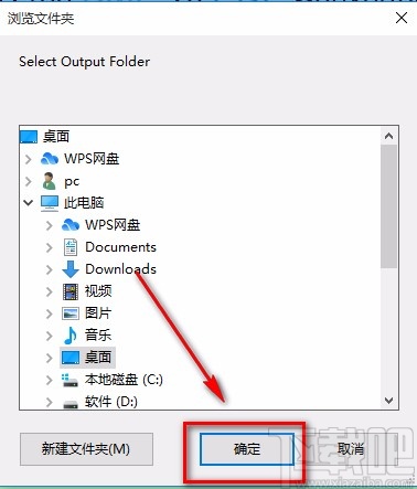 4.接下来在浏览文件夹窗口中,我们将文件的保存文件夹选中,再点击窗口底部的“确定”按钮就可以了。