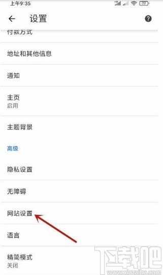 3.进入到设置页面后,我们在页面上找到“网站设置”选项,点击它就能进入到网站设置页面,如下图所示。