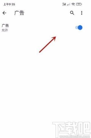 5.最后在广告页面中,我们在页面上方找到“广告”选项,点击该选项后面的开关按钮将其打开,即可成功开启广告屏蔽功能了。