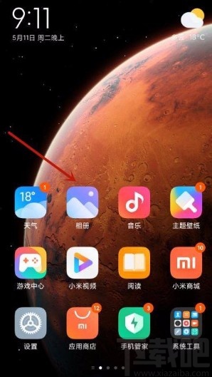 1.首先打开手机,我们在手机桌面上找到“相册”软件,点击该软件就可以进入到相册的主界面。