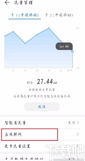 3.接着就会进入到流量管理页面,我们在页面上找到“应用联网”选项,点击它即可切换到应用联网页面。