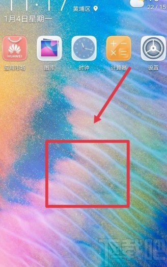 1.首先打开手机,我们在手机桌面的正中间用双指进行捏合操作,这样就可以进行下一步操作。