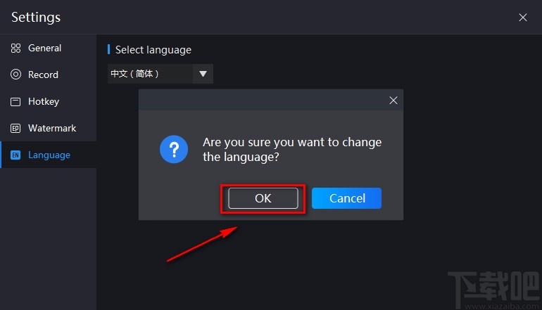 5.随后界面上就会出现一个窗口,我们直接点击窗口底部的“OK”按钮就可以成功设置好中文了。