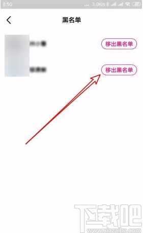 5.接下来就会切换到黑名单页面中,我们在页面上找到需要移出黑名单的用户,点击其后面的“移出黑名单”按钮就可以了。