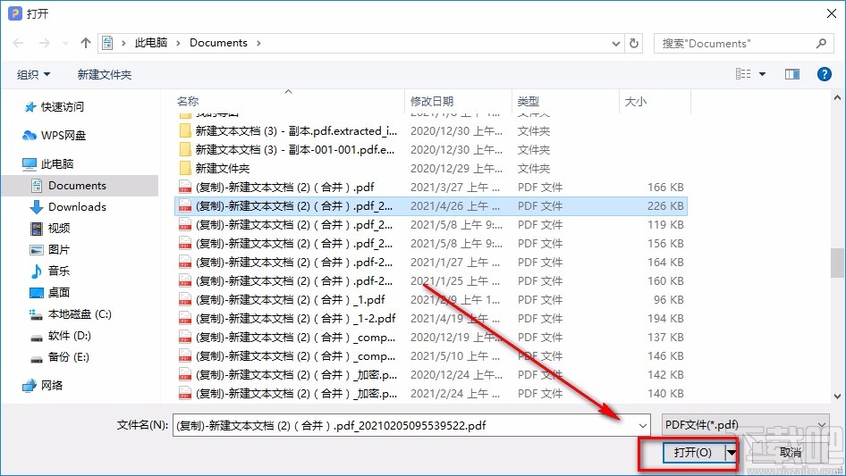 3.接着在文件添加页面中,我们将需要进行拆分操作的PDF文件选中,再点击页面右下角的“打开”按钮即可。