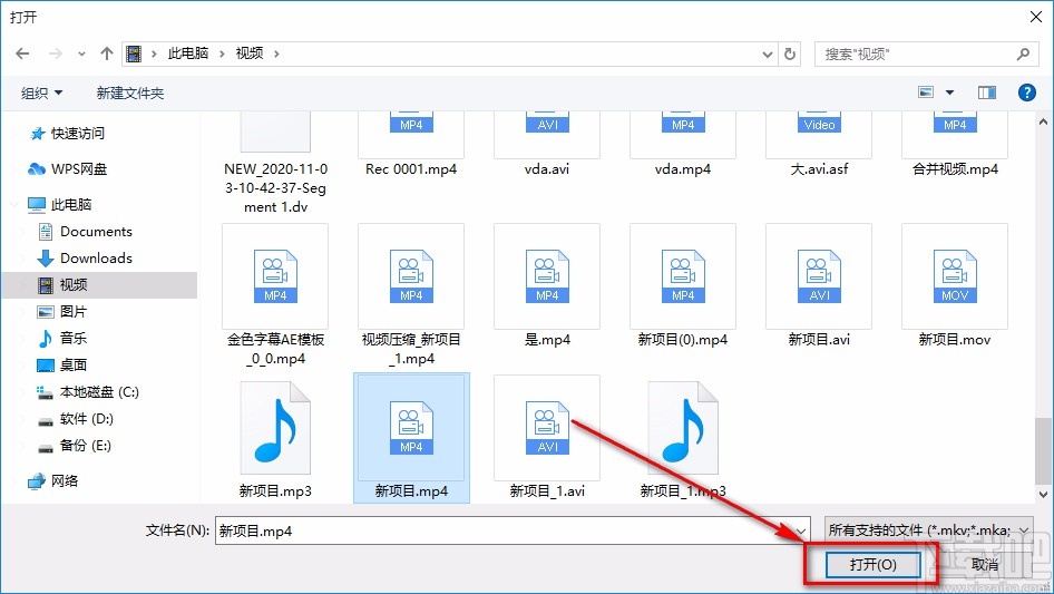 3.然后在文件添加页面中,我们将需要转为音频的视频文件选中,再点击页面右下角的“打开”按钮就可以了。