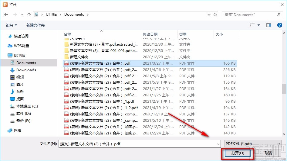 3.接着就会进入到文件添加页面,我们在页面中将需要添加文字水印的PDF文件选中,再点击页面右下角的“打开”按钮即可。