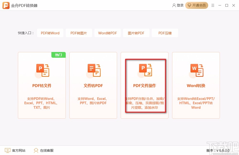 1.首先打开软件,我们在界面上找到“PDF文件操作”选项,点击该选项就可以进入到PDF操作页面。