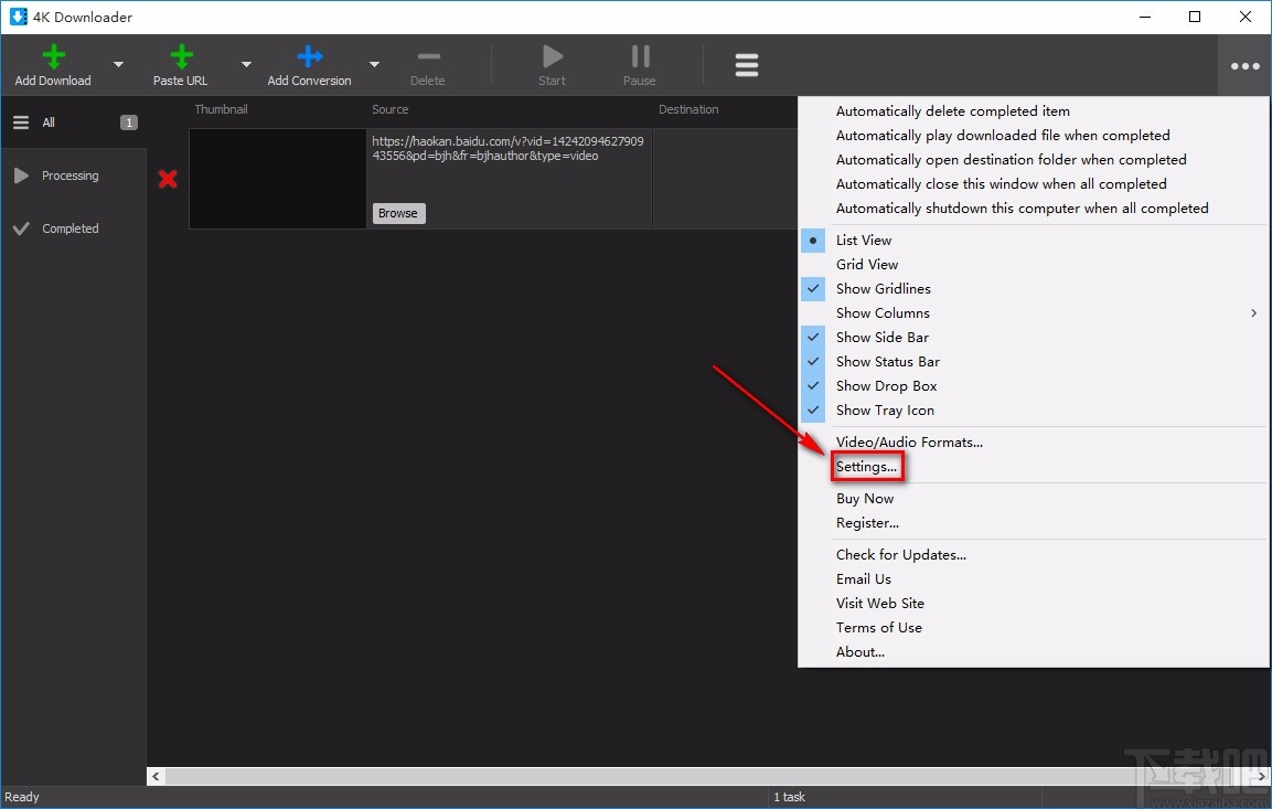 4K Downloader是一款小巧实用的视频下载软件,这款软件支持下载TouTube、Veve等平台上的高清视频,而且用户还能根据自己的需要设置视频清晰度。我们在使用这款软件下载视频的过程中,常常需要设置视频的下载保存位置,这样有利于我们查找和管理视频文件。为了能够提高视频下载的效率,我们可以提前设置好视频的默认保存位置。鉴于该软件的界面语言是英文,那么接下来小编就给大家详细介绍一下4K Downloader设置下载保存位置的具体操作方法,有需要的朋友可以看一看并收藏起来。